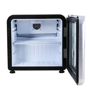 【アウトレット】レトロ冷蔵ショーケース46L ガラス扉 ブラック(扉色:シルバー)【HJR-RK50BK】 LED庫内灯付き 送料無料 小型冷蔵ショーケース