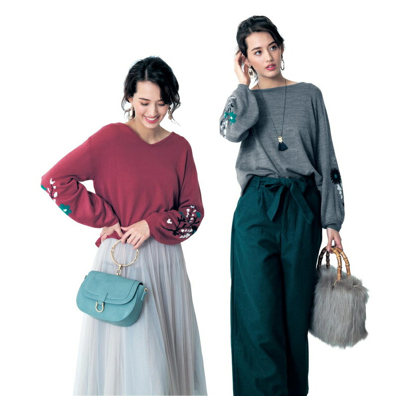 【Disney】 ディズニー 袖ジャカード刺繍2wayニットプルオーバー ◆ 杢グレー ◆ ◇ ベルメゾン レディースファッション レディース ニット セーター ◇