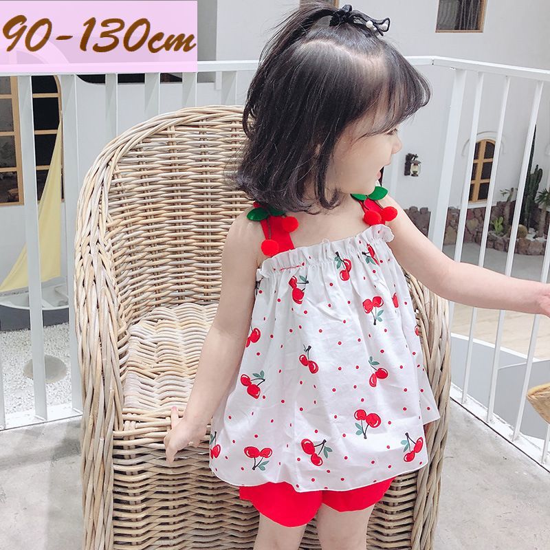 送料無料セットアップ 2点セット キッズ ベビー 女の子 子供服 キャミソール ノースリーブ ショートパンツ チェリー柄 さくらんぼ柄 上下 かわいい