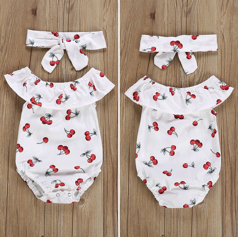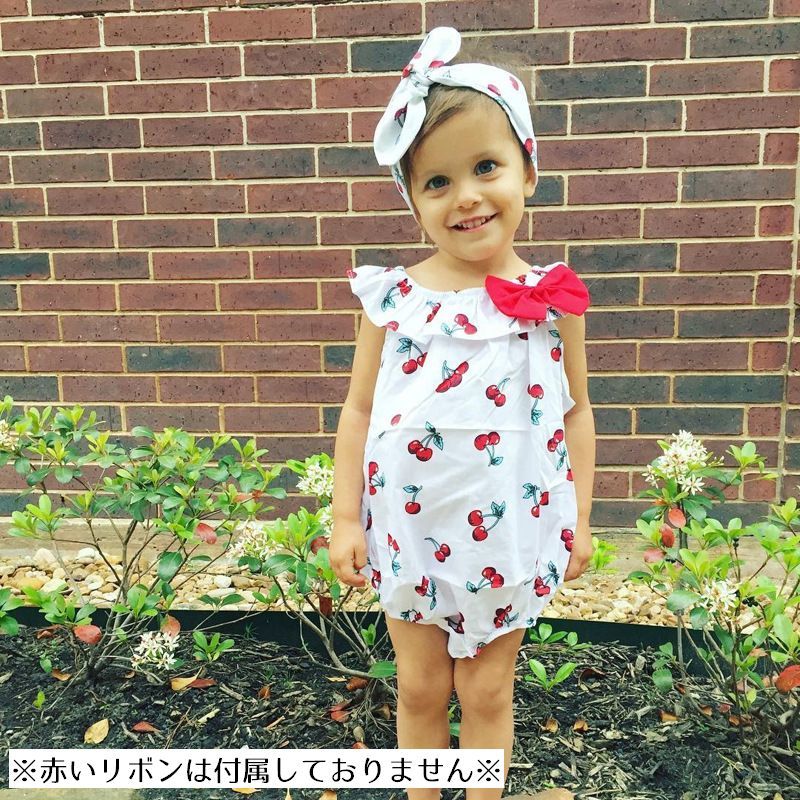 さくらんぼ柄のキュートなベビー用ロンパースです。