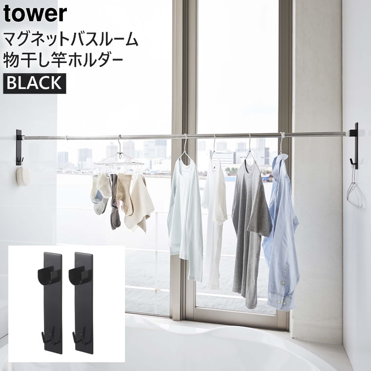 マグネット バスルーム物干し竿ホルダー2個組 TOWER タワー ホワイト ブラック 4915 4916YAMAZAKI 山崎実業 風呂場 バスルーム 洗濯物 物干し ラック ホルダー 物干し竿 お風呂